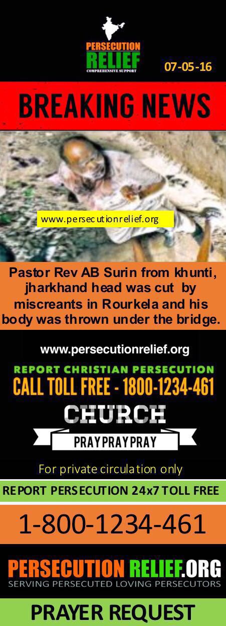 Report Christian persecution in India. TOLL FREE 1800-1234-461 , www.persecutionrelief.org